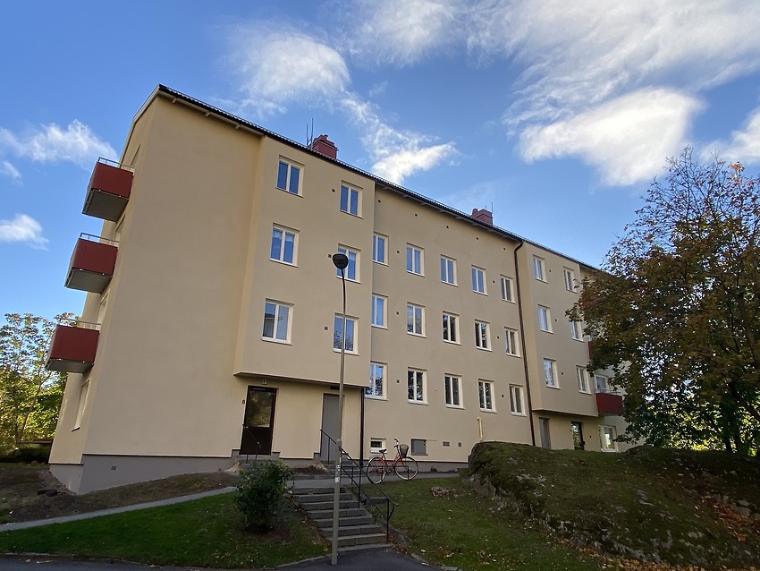 Nu är slutbesiktningen färdig vilken gick väldigt bra! Här har vi hjälpt ett fasadföretag med fönster och fönsterdörrar i denna fastighet som en del i en totalentrepren med puts, balkong och takåtgärder.