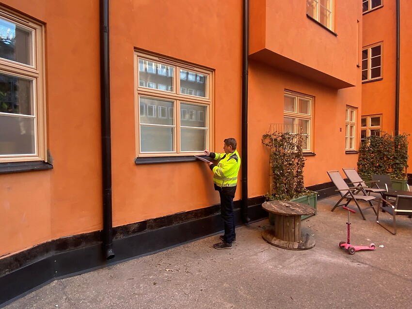 Nu på morgonen är en av våra projektledare och utför en intern förbesiktning under detta pågående fönsterbyte.