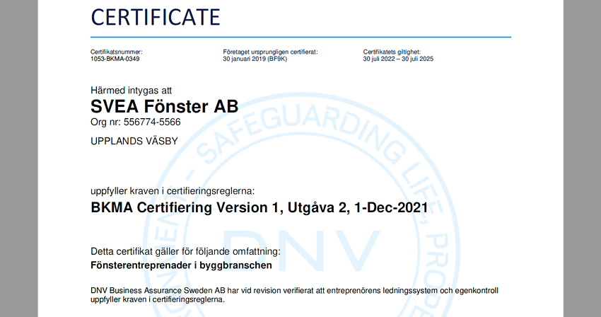 Du kan läsa mer om vad en cerfifiering innebär här: https://byggforetagen.se/byggforetagen-verksamhetslednings-system/