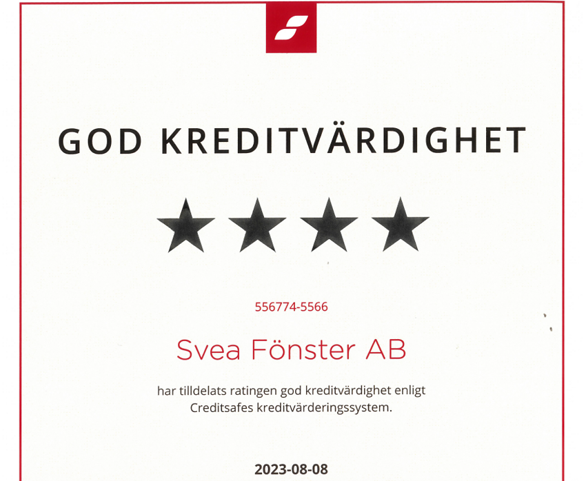 Svea fönster erbjuder dig som kund en trygghet hela vägen där vår ekonomiska stabilitet blir en grundsten i helhetsbilden.