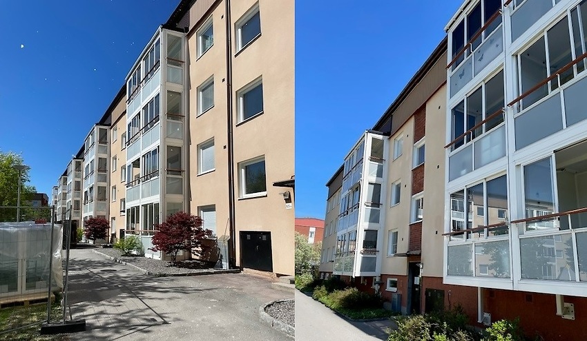 Nu återstår endast en fastighet av totalt 10 ute i Märsta. Här hjälper vi Brf Stinsen med fönsterbyte, sanering av eternitskivor. Därefter byter vi ut isoleringen till Pir-isolering innan vi monterar genomfärgade cembritskivor på balkongpartier och gavelpartier.
