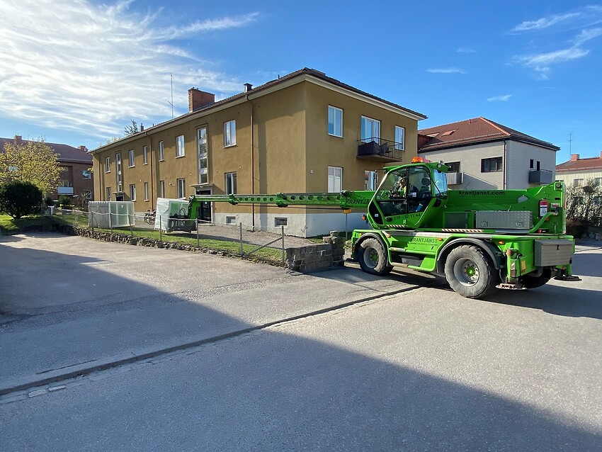 Nu på morgonen kom leveransen inför montagestart. Här ska fastigheten få nya Leiab Haga 2+1 med spaltventiler.